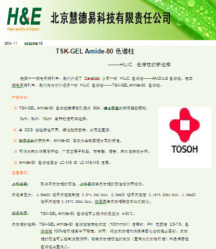 本期簡(jiǎn)介: DAISOGEL ODS-AP 色譜填料 由于具有極高的表面鍵合覆蓋率,DAISOGEL ODS-AP 色譜填料非常適合分離各種不同性質(zhì)有機(jī)化合物。DAISOGEL ODS-AP 在生產(chǎn)過(guò)程中進(jìn)行了完全封端的處理,因此,對(duì)酸性、堿性以及螯合物樣品具有優(yōu)越的分離性能。硅膠填料的孔徑有 60?、100?、120? 和200?、300? 五種選擇,對(duì)快速分析來(lái)說(shuō),200? 填料兼顧了樣品的負(fù)載率,分析速度以及溶劑消耗諸方面的因素,是比較理想的選擇。