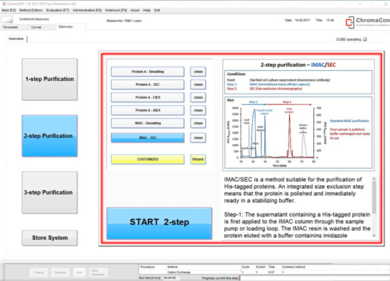 Discovery層析系統(tǒng),是ChromaCon公司為完善系列產(chǎn)品線,專門設(shè)計(jì)的非連續(xù)流層析系統(tǒng),系統(tǒng)硬件采用國際一線品牌,軟件設(shè)計(jì)全面符合21CFR Part 11,適用于實(shí)驗(yàn)室基礎(chǔ)研究,性價(jià)比極高。