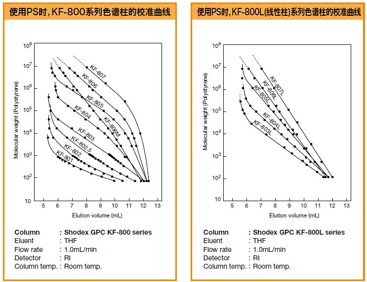 GPC KF-800系列色譜柱的校準(zhǔn)曲線