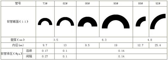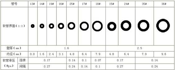 9、流量范圍:?每種軟管對應固定的轉速范圍,我們根據客戶的需要的流量范圍選擇相應軟管。具體數據見各種軟管流量范圍對照表: