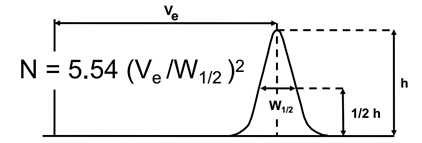 ? ? ?評價標準:一般情況下,認為HETP <4倍粒徑大小即為比較理想的柱效。比如裝填平均粒徑90 μm的Sepharose填料,則要求HETP <360 μm,通過計算,要求每米理論塔板數 >2778。或可根據實際情況,將柱效標準定為每米理論塔板數 ≥3000。
